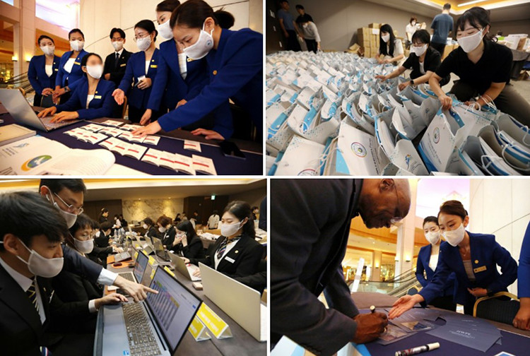 인사들이 입국해 호텔까지 안전하게 올 수 있도록 차량 동선 확인과 수행기사 배치를 하는 의전 차량부, 객실 키카드를 점검하고 도착한 인사에게 서명을 안내하는 객실 안내부, 앞으로 있을 평화만국회의 섹션에 쓰일 교재를 담은 홍보물 키트를 책임지는 인사총괄국 물품부 봉사자들이 인사들이 편안히 머물 수 있도록 구슬땀을 흘리고 있다.