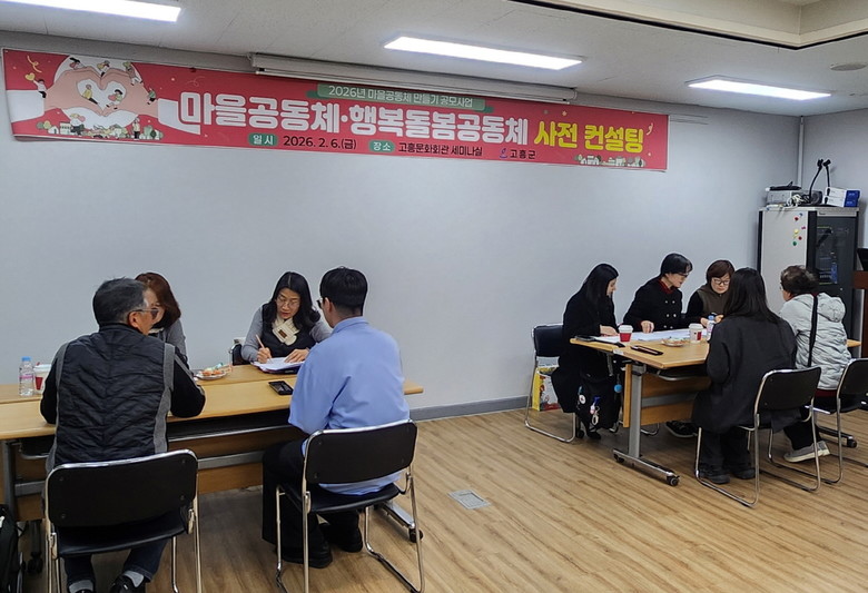[고흥군 세계타임즈=우덕현 기자] 고흥군(군수 공영민)은 6일 고흥문화회관 세미나실에서 2026년 마을공동체 공모사업에 선정된 공동체를 대상으로 사업의 방향성과 실행력을 높이기 위한 사전 컨설팅을 실시했다고 밝혔다.