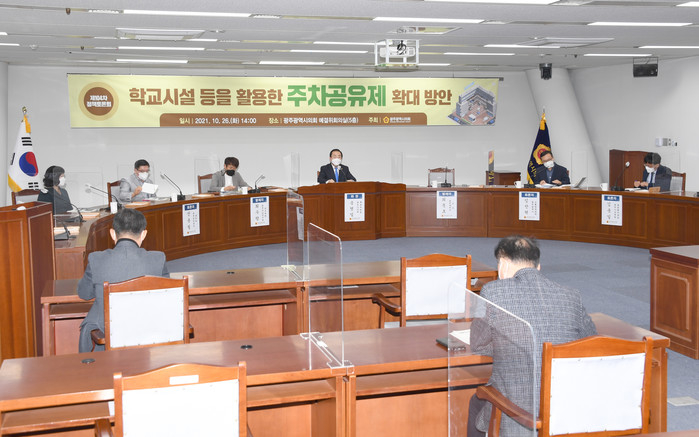 광주광역시의회 송형일(더민주‧서구3) 의원은 26일, 광주시의회 예결위 회의실에서 ‘학교시설 등을 활용한 주차 공유제 확대 방안’ 모색을 위한 정책토론회를 개최했다고 밝혔다.