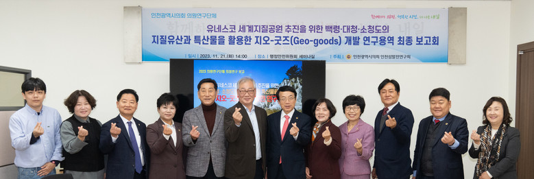 인천시의회 의원연구단체인 ‘지질 유산 보존을 위한 인천섬발전연구회(대표의원 신영희)’는 21일 행정안전위원회 세미나실에서 ‘유네스코 세계지질공원 추진을 위한 백령·대청·소청도의 지질 유산과 특산물을 활용한 지오-굿즈(Geo-Goods) 개발 방안 연구’ 성과를 공유하는 최종보고회를 개최했다.
