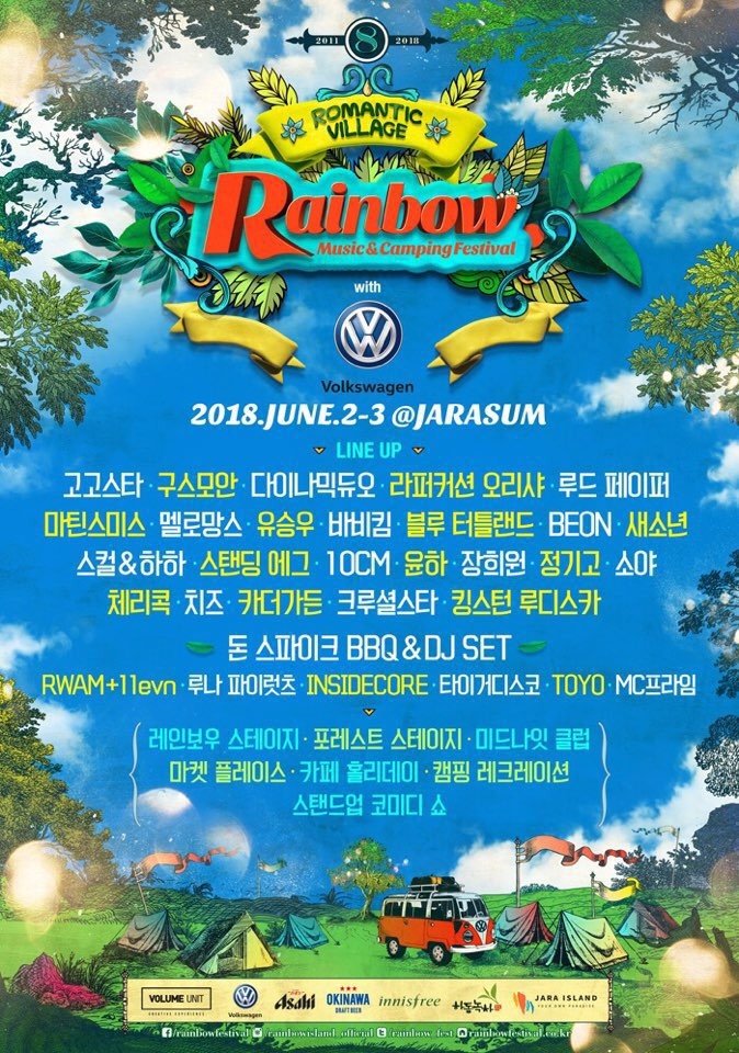 폭스바겐코리아가 메인 타이틀 후원사로 참여하는 이번 레인보우 페스티벌은 음악과 캠핑을 사랑하는 모든 이들이 함께 모여 자라섬의 자연을 느끼며 여유를 만끽하고 즐길 수 있는 자리를 마련하기 위해 기획됐다. 폭스바겐코리아는 이번 공식 후원을 통해 레인보우 페스티벌의 공연, 캠핑 콘텐츠와 자라섬의 아름다운 자연 환경을 조화롭게 구성하여 관객들에게 최고의 브랜드 경험을 선사할 계획이다.