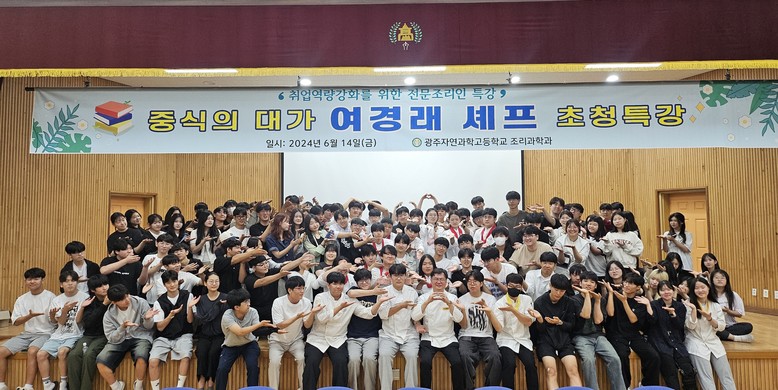 [광주 세계타임즈=한윤석 기자] 광주자연과학고등학교가 조리과학과 1~3학년 학생을 대상으로 여경래 스타 셰프를 초청해 4년 연속 전문 조리인 특강을 실시했다고 밝혔다.