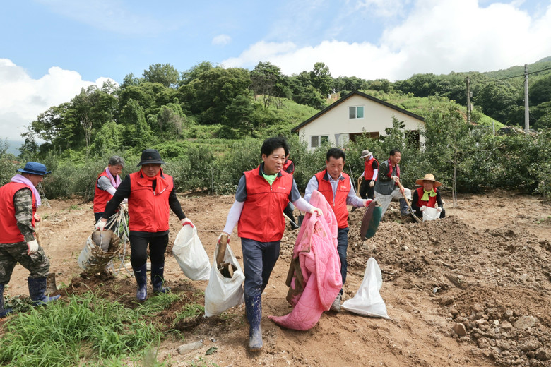 [경북 세계타임즈=한성국 기자] 경상북도의회(의장 배한철)는 7월 26일 기획경제위원회 및 행정보건복지위원회 위원 등 도의회 의원을 비롯한 사무처 직원 50여명이 참여한 가운데 경북 북부지역 집중호우로 인해 큰 피해를 입은 영주시 봉현면 하촌3리 장수마을회관 주변 주택가 일대 주택매몰 토사제거 및 환경정비작업에 구슬땀을 흘렸다.
