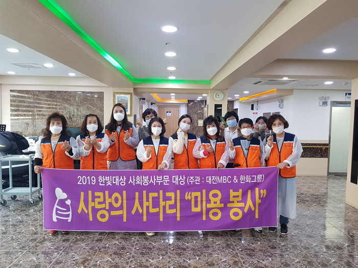 [대전=세계타임즈 이채봉 기자] 9천명 SNS 대전시 봉사단체 사랑의 사다리 밴드(리더 이정제)는 27일 오전10시, 중구 선화동 세명요양병원에서 60분의 어르신들 미용봉사로 사회적 효행을 실천하였다.