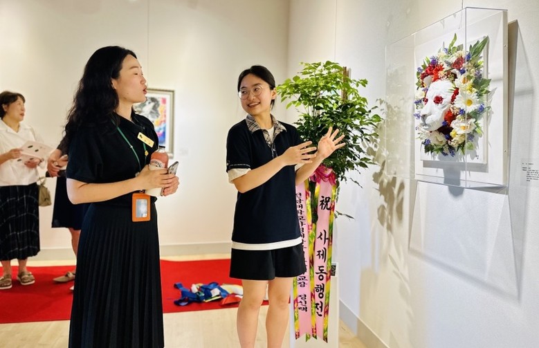 지난 6월 28일 시작된 이번 전시회는 예술교육 활성화 프로그램의 일환으로 학생 19명과 교사 9명, 학습도움실 학생 전원이 공동으로 참여해 작품을 출품했다.