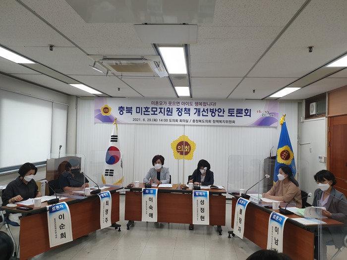 [충북=세계타임즈 이현진 기자] 충청북도의회 정책복지위원회는 29일 도의회 회의실에서 이숙애(청주1) 의원이 좌장을 맡아 <미혼모가 웃으면 아이도 행복합니다!!>라는 주제로 ‘충북 미혼모지원 정책 개선방안 토론회’를 개최했다.