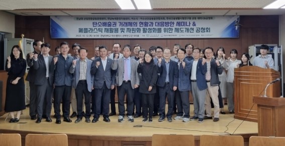 사회는 김은식 전남녹색환경지원센터장이 맡았으며, 주종섭 의원, 여수시ㆍ여수산단공동발전협의회 김신 사무국장, 한국건설생활환경시험연구원 호남본부 변호석 박사, 한화솔루션 여수공장 박종걸 상무, 전남녹색환경지원센터 부설연구소 최근태 연구위원이 패널 토론자로 참석해 탄소중립 실현을 위한 탄소배출권 거래제와 폐플라스틱 자원화 제도화 방안’을 주제로 열띤 토론을 벌였다.