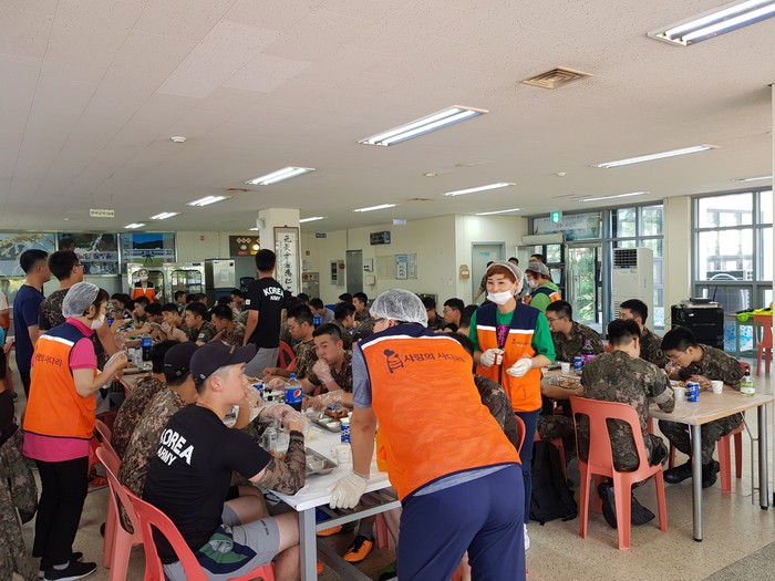 신상일 통닭 봉사 단장은 “나라를 위해 애쓰시는 군장병들이 바비큐 통닭을 맛있게 드시는 모습에서 행복과 보람을 느낀다.“고 말했다.