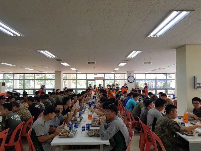유성대대 조종옥 대대장은 “ 오늘 사랑의 사다리 밴드에서 맛있는 통닭을 지원해주셔서 군사기진작에 큰 도움이 되었다.“면서 감사함을 전했다.