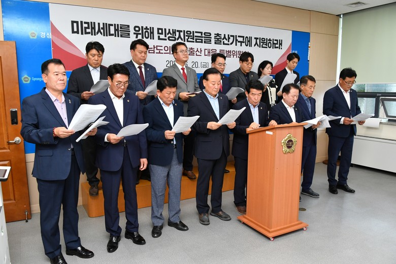 [경남 세계타임즈=최성룡 기자] 경상남도의회 저출산 대응 특별위원회(위원장 진상락)는 6월 20일 경상남도의회 브리핑룸에서 기자회견을 열고, 새 정부의 단기 현금지원 정책을 강하게 비판하며 장기적·선별적 투자로의 전환을 촉구했다.