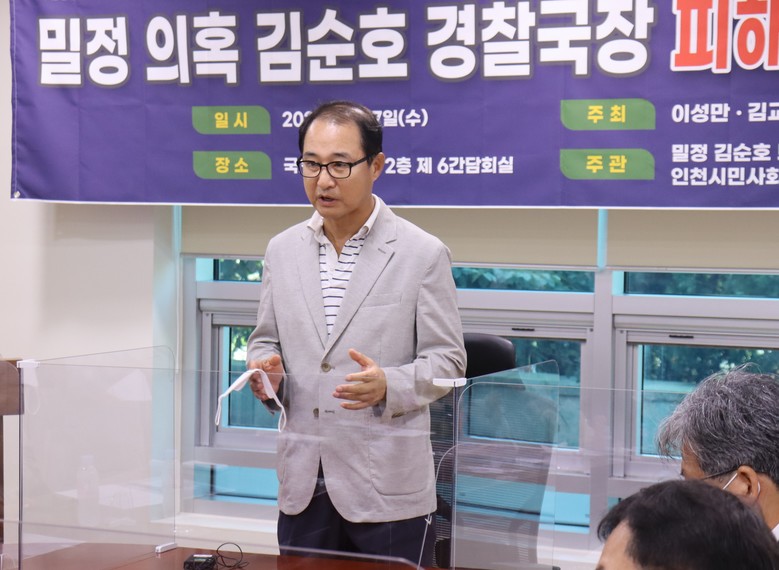 [세계타임즈=김광수 기자] 더불어민주당 이성만 의원(인천 부평갑·행정안전위원회)은 7일 국회의원회관 제6간담회실에서 ‘밀정 의혹 김순호 경찰국장 피해자 증언 간담회’를 개최했다.
