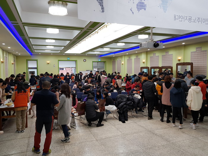 [대전=세계타임즈 이장성 기자] 추운날씨에도 변함없이 다양한 봉사활동을 하고 있는 7천명 SNS 대전광역시 봉사단체 사랑의 사다리 밴드(리더 이정제)는 16일 오후3시, 대전시근로자종합복지관에서 열린 2018세계이주민의날 기념 세계음식자랑 행사에서 바베큐통닭 봉사와 난타공연봉사로 한국 사회의 따뜻한 사랑을 전달하였다.