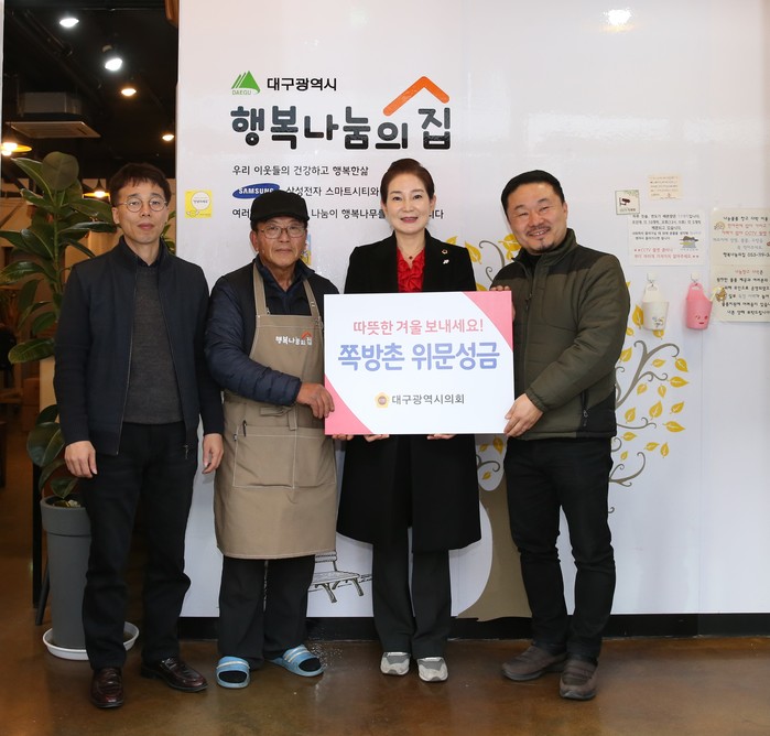 [대구=세계타임즈 한성국 기자] 대구광역시의회(의장 배지숙)는 19일(목) 동절기 한파 속에서 힘들게 생활하고 있는 쪽방 생활인과 지원시설을 방문하여 관계자들을 격려했다.