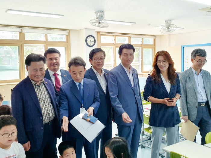 이날 방문에서 교육위원들은 영선초 이운발 교장으로부터 미래교육리노베이션 교실과 함께 최근 도입된 IB교육 진행상황 등 학교의 현안을 중심으로 미래 학교가 나갈 방향에 대해 모색할 수 있는 시간을 가졌다.