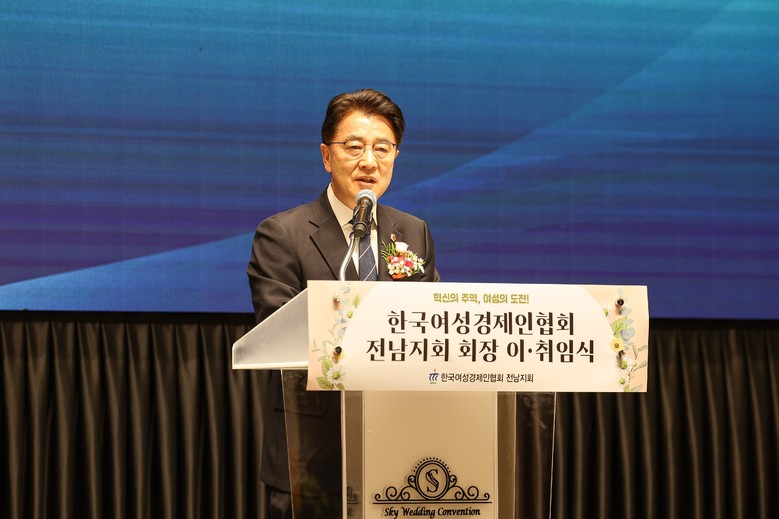 [전남 세계타임즈=우덕현 기자] 김태균 전라남도의회 의장은 2월 21일 오후 4시 남악스카이웨딩컨벤션에서 열린 ‘한국여성경제인협회 전남지회 대표 이‧취임식’에 참석해 취임 축하와 함께 “여성경제인이 40%에 육박하여 미래세대는 여성기업인들 손에 달려있다”며 격려했다.