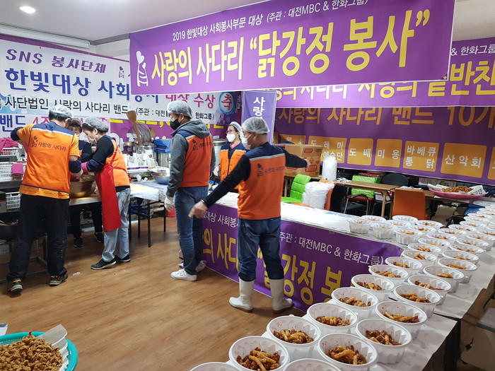 [대전=세계타임즈 이채봉 기자] 코로나19 상황에서도 비대면 봉사로 다양한 나눔을 실천하고 있는 SNS 9천명 대전시 봉사단체 사랑의 사다리 밴드(리더 이정제)는 7일 오후3시, 유성구 송강지역 소외계층 200가정에 닭강정 봉사로 우리 사회의 따뜻한 사랑을 실천 하였다.