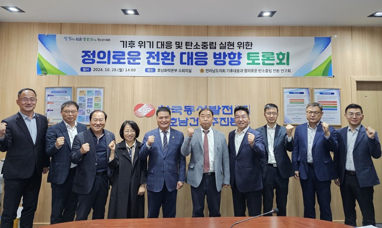 또한, 연구회는 기후위기 대응 및 탄소중립 실현을 위한 정의로운 전환 대응 방향을 주제로 호남화력본부 소회의실에서 토론회도 열었다. 주종섭 의원이 좌장을 맡은 가운데 조승희 전남연구원 박사가 발제자로 나서 전남의 정의로운 전환 위한 제언을 발표한 뒤 종합토론을 이어갔다.