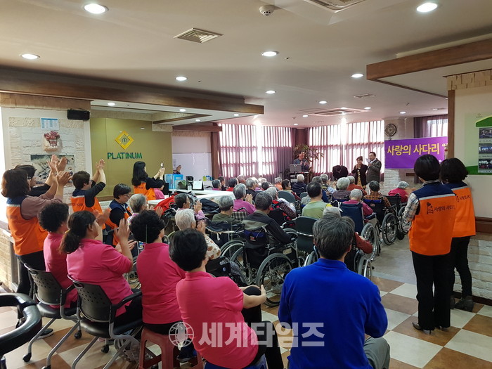 [대전=세계타임즈 이장성 기자] 다양한 봉사활동을 하고 있는 5천명 봉사단체 사랑의 사다리 밴드(리더 이정제)의 도레미 봉사예술단(단장 안경헌)은 18일 오후 2시,동구 판암동에 위치한 플래티늄 요양원에서 50여분의 어르신들께 위문공연 봉사로 사회적 효행을 실천하였다.