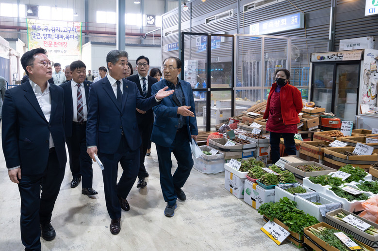 이날 산경위는 입지상의 문제로 인해 상대적으로 활기를 잃은 채소2동을 중점적으로 둘러보고, 중도매인들이 겪는 불편을 직접 확인했다.