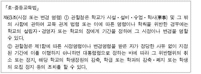 ㆍ 사립학교법 제43조(지원) :‘보조를 신청한 학교법인 또는 사학지원단체에 대하여 보조금을 교부하거나