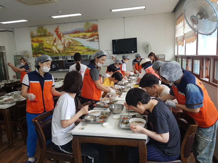 유희자 나눔봉사단장은 “장애인분들이 삼계탕과 닭죽을 맛있게 드시는 모습에서 행복과 보람을 느낀다.”고 말했다.