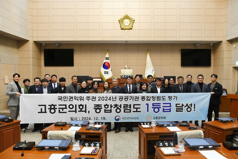 고흥군의회 류제동 의장은 “이번 청렴도 1등급 성과는 군민들의 눈높이에 맞춘 의회운영과 군민과의 신뢰를 바탕으로 이뤄낸 결과”라며 “앞으로도 군민의 기대에 부응하며 투명하고 책임있는 의정 활동을 통해 더욱 신뢰받는 의회를 만들어가겠다”고 말했다.