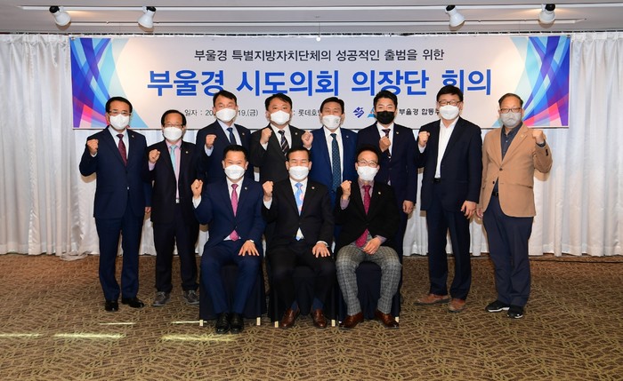 부울경 특별지방자치단체 합동추진단(이하 합동추진단)은 11월 19일 오전 11시 부산 롯데호텔에서 부울경 시도의회 의장단 회의를 개최하였다.