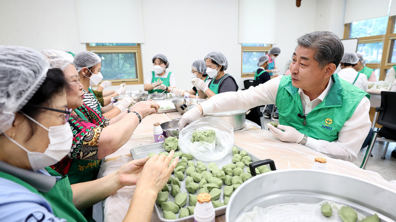 이렇게 만들어진 송편은 이후 점심시간 때 인근 차상위계층 노인들을 초청해 점심 식사와 함께 제공됐다.