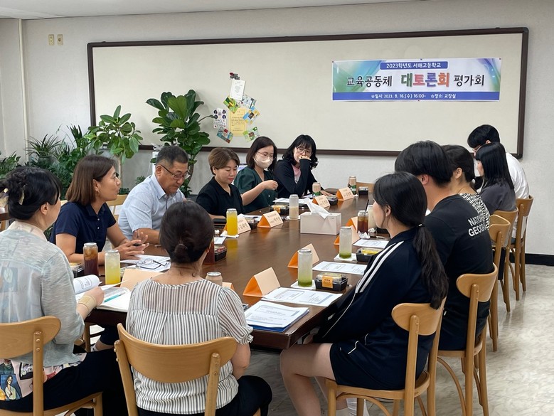이날 실시된 간담회에서는 “고교학점제가 가져온 학교의 변화, 어려운점과 해결을 위한 방향 탐색”를 주제로 7월 21일(금) 실시된 교직원 대토론회에서 협의한 내용을 교육공동체 대표들과 공유하는 것을 목적으로 시행했다.