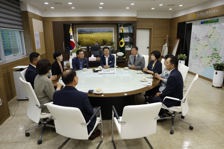 강형구 의장과 오행숙 부의장, 각 상임위원장을 비롯한 의원들이 함께한 이번 방문은 강형구 의장이 밝힌 ‘경청하고, 행동하는, 시민의 의회’를 만들기 위한 행보의 일환으로 제9대 순천시의회 후반기 의정활동의 방향을 알리고, 유관기관과 긴밀한 협조체계 구축을 위해 마련됐다.