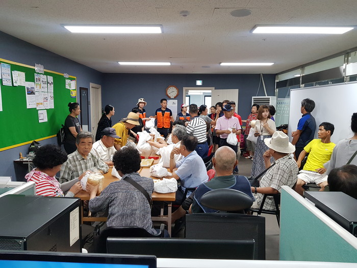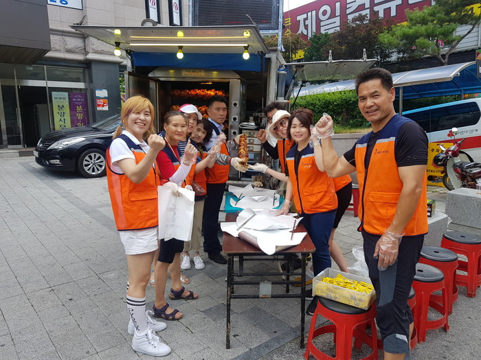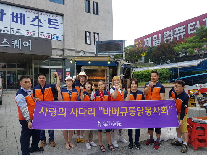 [대전=세계타임즈 이장성 기자] 폭염에도 따뜻한 이웃사랑을 꾸준히 전달하고 있는 사단법인 사랑의 사다리 밴드(리더 이정제)는 19일 대전시농아인협회(회장 박종희)회원 50명의 농아인들과 동구 소제동 대전 자혜원에서 30명의 원생들에게 바베큐통닭 봉사(회장 신상일)로 따뜻한 사랑을 나누었다.