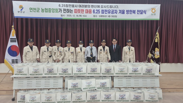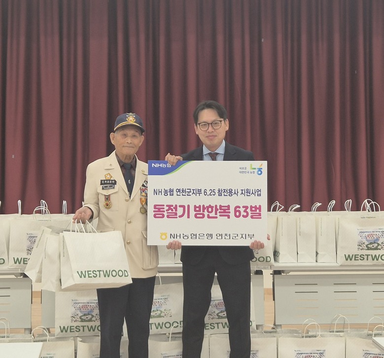 NH농협은행 연천군지부 한창기 지부장은 “나라를 위해 헌신하신 6·25 참전유공자분들께 보답하는 마음으로 겨울 패딩을 준비했다”며 “앞으로도 지역사회와 함께하는 다양한 사회공헌활동을 지속적으로 추진하겠다”고 말했다.