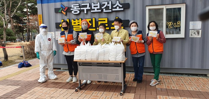 장선애 동구보건소장은 “오늘 사랑의 사다리 밴드 봉사단체에서 맛있는 닭강정을 지원해 주어서 큰 힘과 위안이 된다,”면서 “동구보건소는 코로나19 종식을 위해서 최선을 다하겠다.”고 말했다.