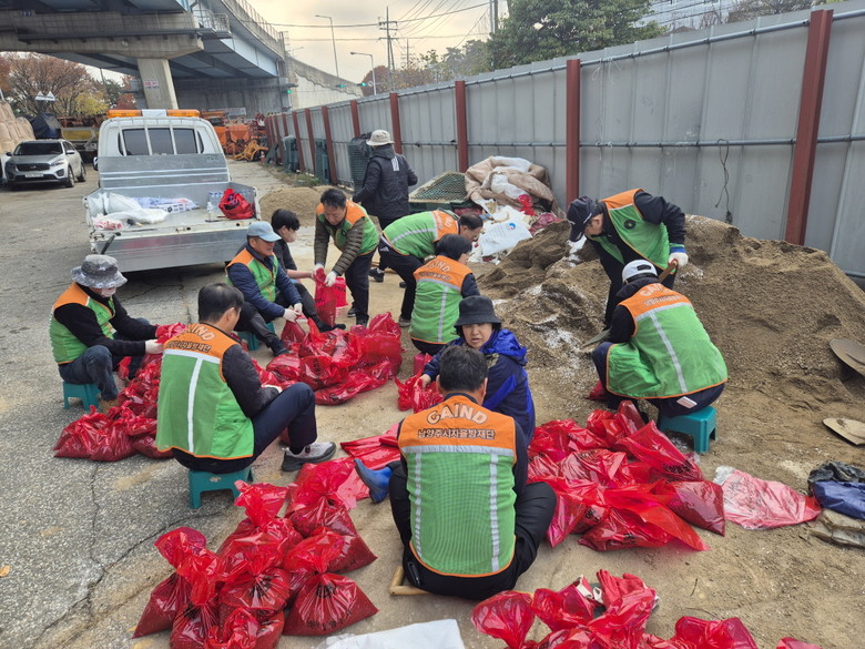 모래와 염화칼슘을 혼합해 제작된 이번 모래주머니는 마을안길, 급경사지, 골목길 등 제설 차량이 진입하기 어려운 제설 취약지역에 비치됐다. 특히 누구나 손쉽게 제설 용도로 사용할 수 있도록 접근성과 활용도를 높였다.