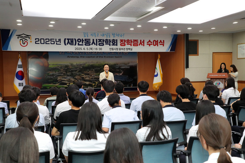 [안동시 세계타임즈=한윤석 기자] (재)안동시장학회(공동이사장 권기창, 김원)는 지난 6월 5일(목) 안동시청 웅부관 청백실에서 ‘2025년도 장학증서 수여식’을 개최했다.