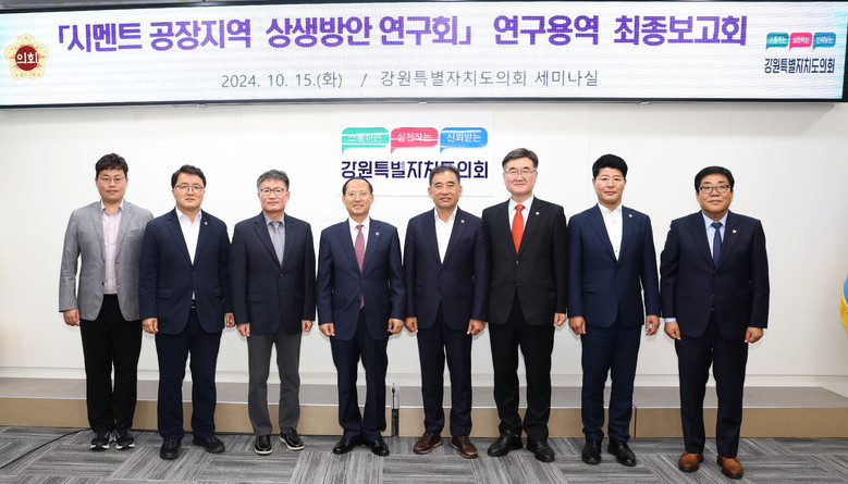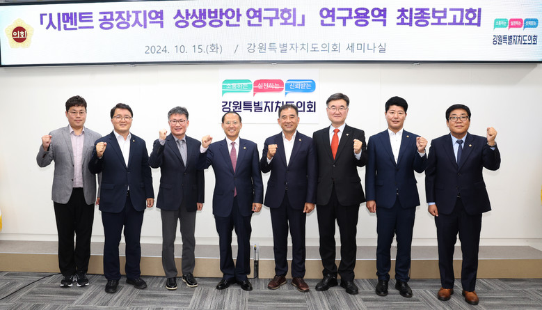 [강원도 세계타임즈=김민석 기자] 제11대 강원특별자치도의회 의원 연구 모임인 「시멘트 주변지역 상생방안 연구회」에서 ‘영동지역 시멘트공장 현안문제 및 대처방안’이라는 주제로 올해 3월부터 진행된 연구용역’ 최종보고회를 10월 15일(화) 개최했다.