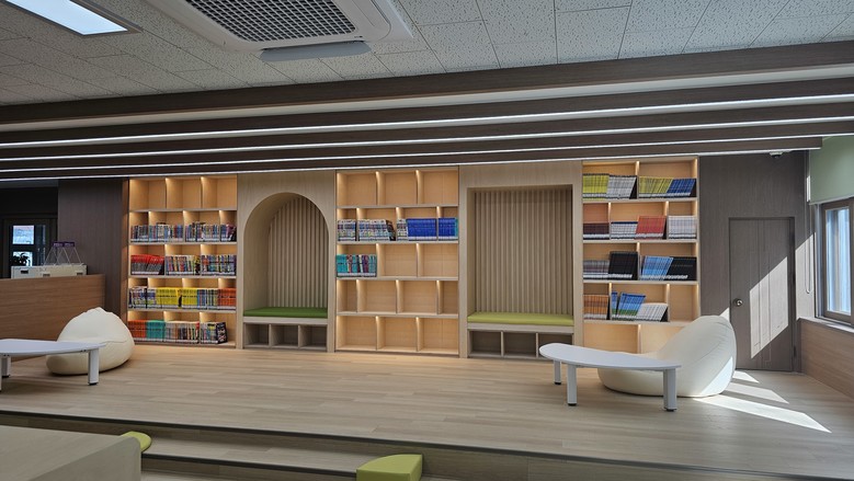 사용자 참여 설계를 통해 기존 도서관을 현대화한 것으로 학생들이 바닥에 앉아 뒹굴거나 혼자 책을 읽는 등 학생들의 눈높이에 맞춰 공간을 구성하고, 마루 공간, 터널형 독서 공간, 북카페형 공간, 세이프 쿠션 등 다양한 테마 공간을 마련했다.