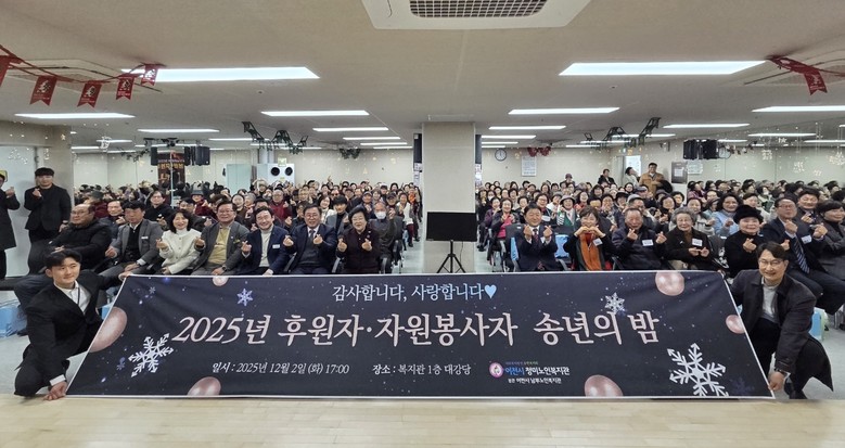 [이천시 세계타임즈=송민수 기자] 이천시(시장 김경희)는 이천시 청미노인복지관(관장 최대열)이 지난 12월 2일(화), 올 한 해 복지관의 다양한 사업 운영에 함께해 준 후원자 및 자원봉사자를 초청해 ‘2025년 후원자‧자원봉사자 송년의 밤’ 행사를 성황리에 개최했다고 밝혔다.