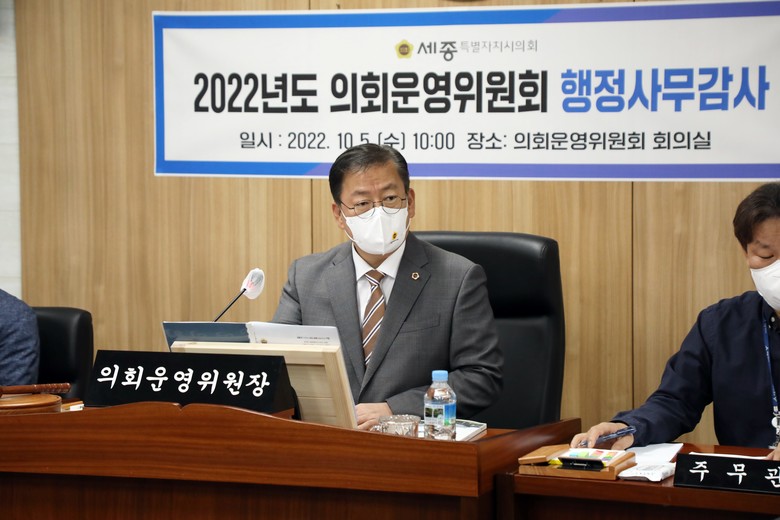 [세종 세계타임즈=이채봉 기자] 세종특별자치시의회 의회운영위원회(위원장 유인호)는 제78회 정례회 기간 중인 5일 의회사무처를 대상으로 2022년도 행정사무감사를 실시했다.