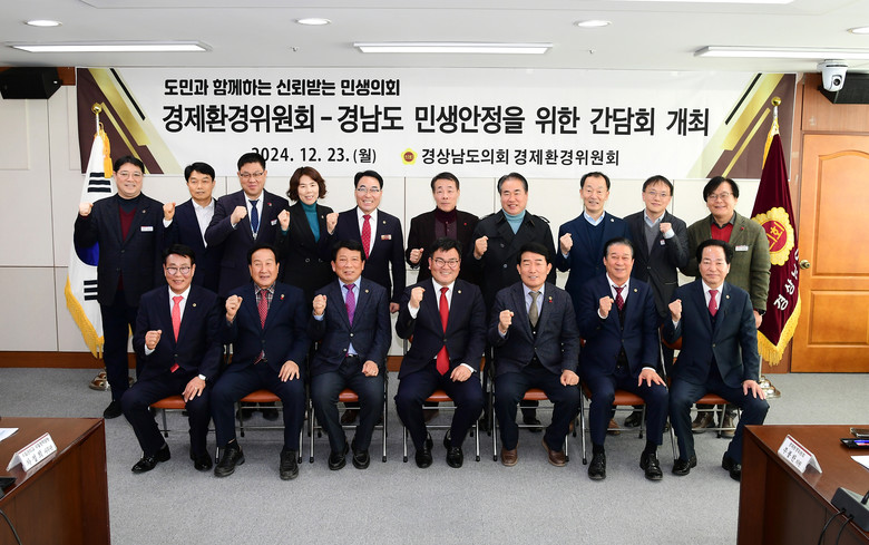 [경남 세계타임즈=최성룡 기자] 경남도의회 경제환경위원회(위원장 허동원)는 12월 23일, 경남도와 민생안정을 위한 간담회를 통해 경남도의 민생 관련 현안업무 청취 및 추진 시책을 점검하고 도민을 위한 현실적인 정책을 제안하고 산업, 경제, 산림·환경 분야의 지원 및 관리대책을 논의하는 등 민생안정을 위한 시간을 가졌다.