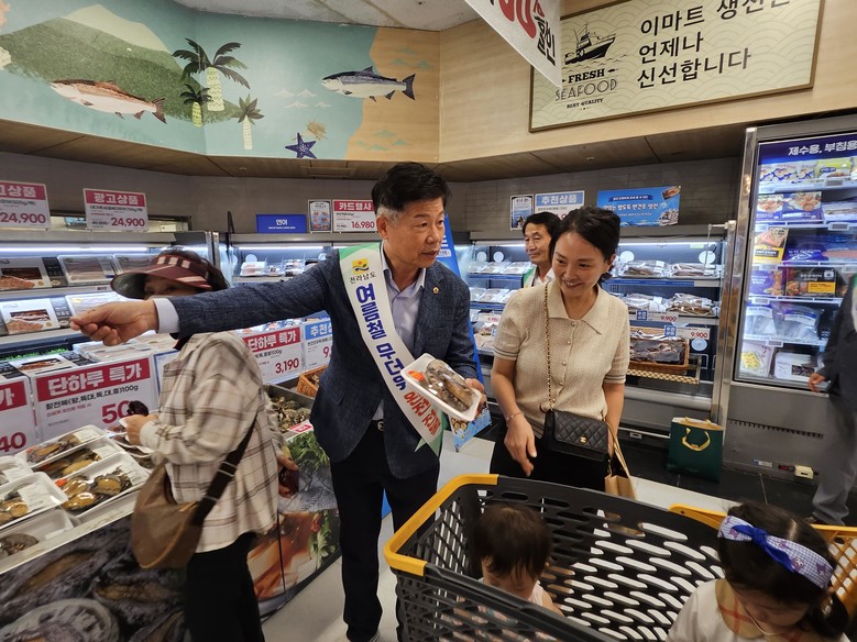 [전남 세계타임즈=우덕현 기자] 전라남도의회 농수산위원회 김문수 위원장(더불어민주당, 신안1)은 지난 8월 7일 이마트 광주점에서 전복과 우럭 등 수산물 판촉 행사에 참석했다.