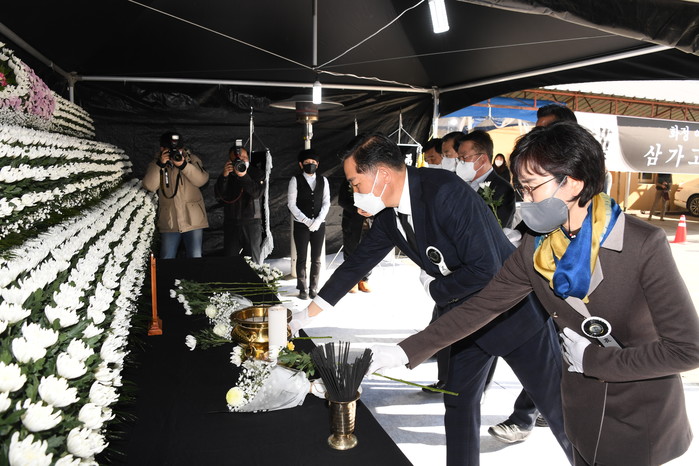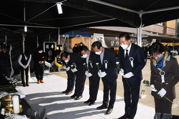 [광주=세계타임즈 손권일 기자] 광주광역시의회(의장 김용집)는 2월 12일 오후 2시 화정동 붕괴사고 희생자 합동분향소를 찾아 조문하고 유가족 대표를 만났다.
