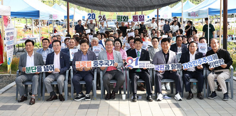 대전시의회 조원휘 의장은 7일 하기숲 캠핑장에서 열린 통일감성 어울림캠프에 참석해 행사를 준비한 민주평화통일자문회의 대전유성구협의회 이상욱 협의회장을 비롯한 관계자들과 인사를 나눴다.