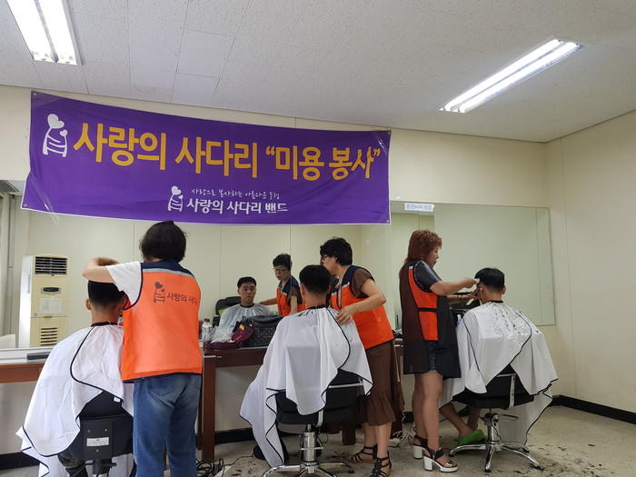 [대전=세계타임즈 이장성 기자] 대전시 소외계층을 위해서 다양한 봉사활동을 실천하고 있는 대전시 SNS 8천명 봉사단체 사단법인 사랑의 사다리 밴드(리더 이정제)는 12일, 육군군수사령부내 유성대대(대대장 조종옥)에서 미용봉사로 우리 사회의 따뜻한 사랑을 실천 하였다.