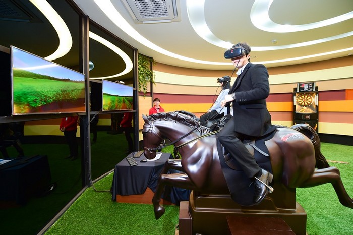 놀라운지가 ‘스포테인먼트’ 명소로 떠오른 것은 승마는 물론 말과 관련된 체험 공간이 다양하기 때문이다. ‘플레이존’에서는 VR 승마 시뮬레이터를 통해 실제 말을 타고 달리는 것과 같은 4D 승마를 체험할 수 있다.