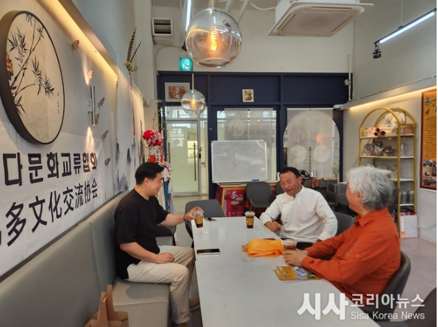 [세계타임즈]최성룡기자 = 한중미술협회 차홍규(车鸿圭) 회장은 21일 인천 송도에 위치한 한중다문화교류협회(韩中多文化交流协会 이사장 구광회/具光会, 부이사장 왕리저/王丽哲)에서 초청한 황남주수상화원 짜시찌안초 아카데미 원장과 대담을 통하여 한중미술협회와 티벳의 황남주수상화원은 향후 소속 작가들의 교류 전시 및 문화행사를 같이 하기로 뜻을 모았다.