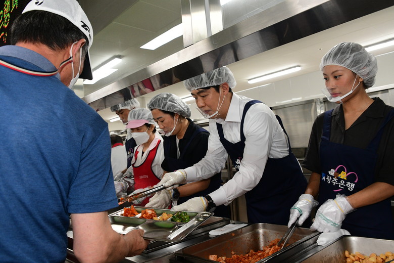 이날 배식 봉사에는 이귀순 부의장을 비롯한 시의원 15명과 고병일광주은행장, 광주은행 홍보대사 등 30여명이 함께 했다.