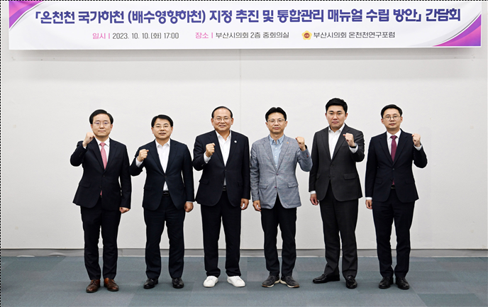 [부산 세계타임즈=이용우 기자] 부산광역시의회 의원연구단체 ‘온천천연구포럼 (대표 안재권 의원(연제구1, 국민의힘)'이 주최하는 「온천천 국가하천 배수영향하천 지정 추진 및 통합관리 매뉴얼 수립 방안」간담회가 지난 10일(화) 17시 부산시의회 2층 중회의실에서 개최됐다.