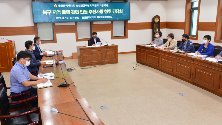 이날 간담회는 북구 지역 트램 2호선 관련 주민들의 고충사항을 해결할 수 있는 방안을 논의하기 위해 마련됐으며 북구 의회 조문경 복지건설위원장, 김정희.박정환.손옥선 의원, 북구 의회사무과 직원, 울산시 관계자 등 9여 명이 참석했다.