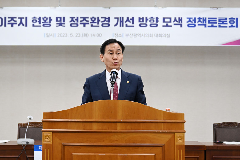 [부산 세계타임즈=이용우 기자] 부산광역시의회 복지환경위원회는 ’23.5월23일(화) 부산광역시의회 대회의실(2층)에서 ⌜정책이주지 현황 및 정주환경 개선 방향 모색⌟을 주제로 정책토론회를 개최하였다.